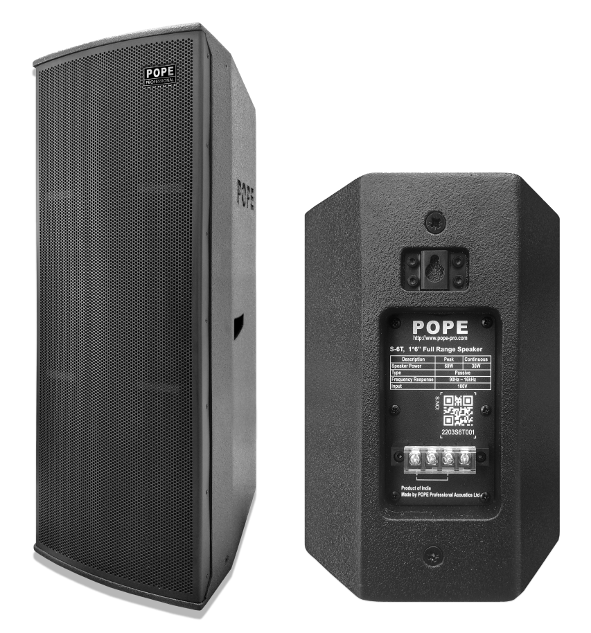 The POPE Professional® S Series compact full range loudspeaker provides a high quality sound reinforcement and resistance to weather. The S Series speakers are made for stand alone 100V operation.